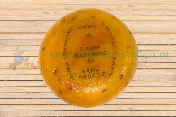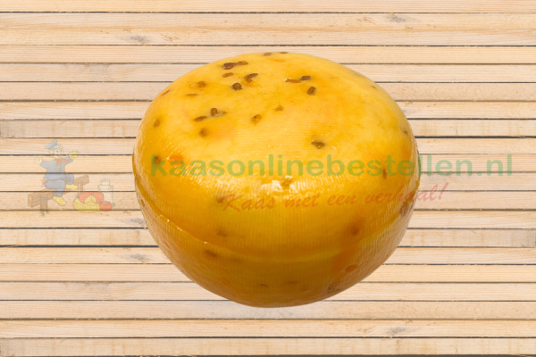 Ein ganzer Bauernkäse mit einem Gewicht von ca. 500 Gramm und Bockshornklee. Durch die Zugabe von Bockshornklee erhält der Bauernkäse einen schmackhaften, nussigen Nachgeschmack.