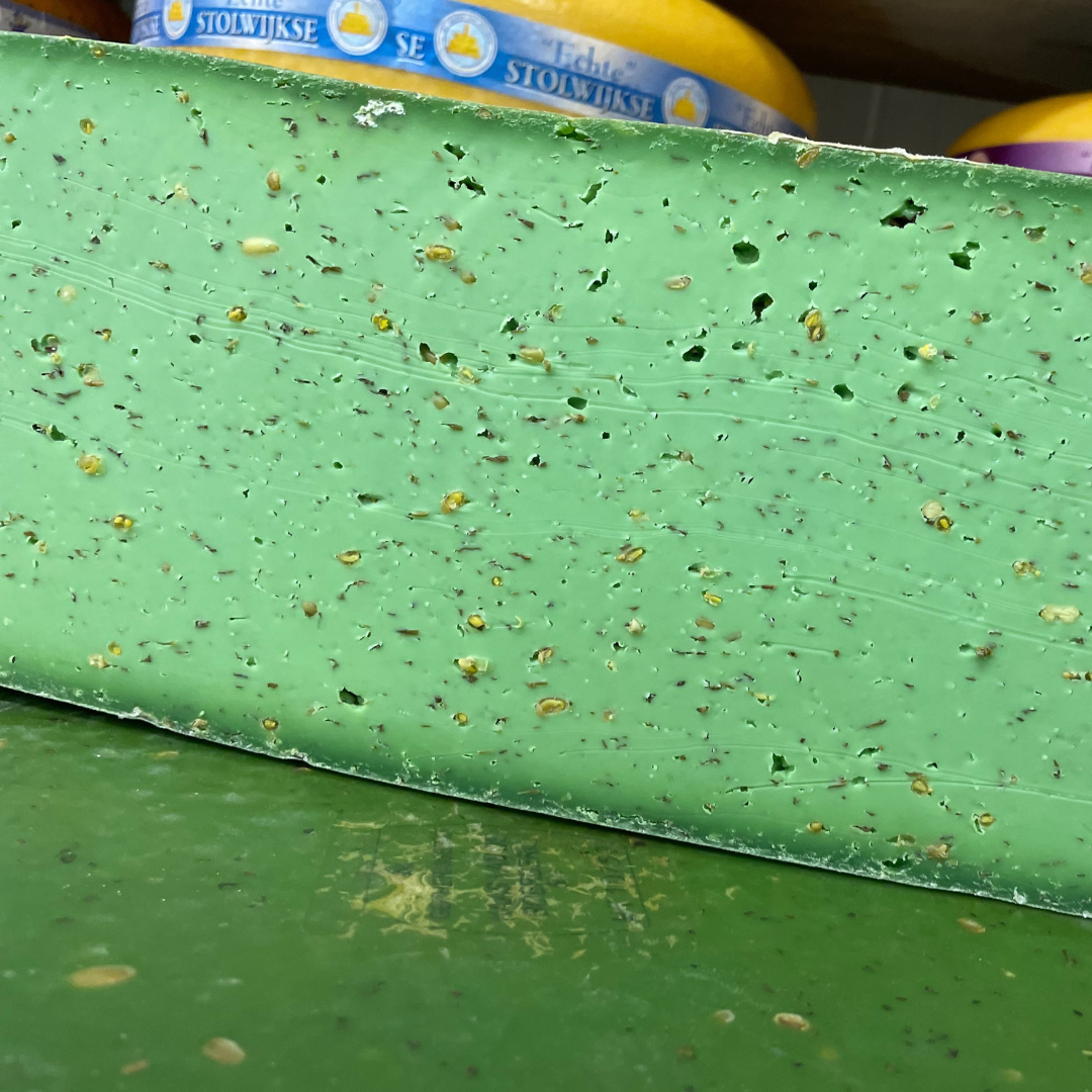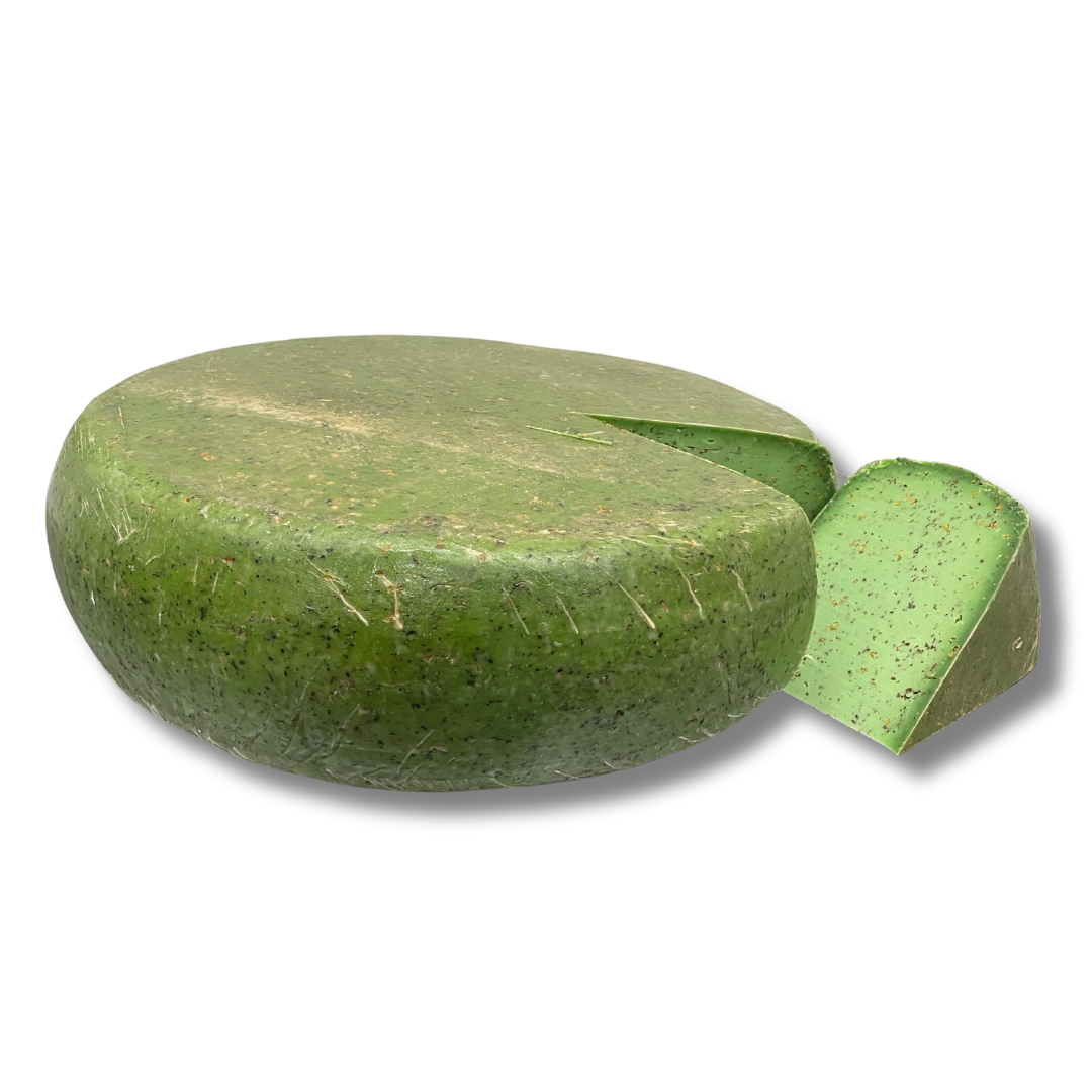 Ein echter Hingucker und unglaublich lecker! Suchen Sie nach einem Farbtupfer und einem Hauch von Geschmack für Ihre Käseplatte? Wir haben etwas Besonderes und unglaublich Geschmackvolles: den riesigen Bauernkäse mit grünem Pesto und Pinienkernen. Dank seiner enormen Größe bleibt dieser Käse herrlich cremig, und das köstliche Pesto macht ihn zu einem beliebten Favoriten.