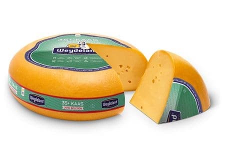 Weydeland 35+  is de lekkerste minder vet kaas die ook nog eens zeer smaakvol is! Het vetgehalte in deze kaas ligt ca. 25% lager dan in gewone kaas. De verse melk van onze Hollandse koeien is het ingrediënt voor de zachte smaak van Weydeland 35+.